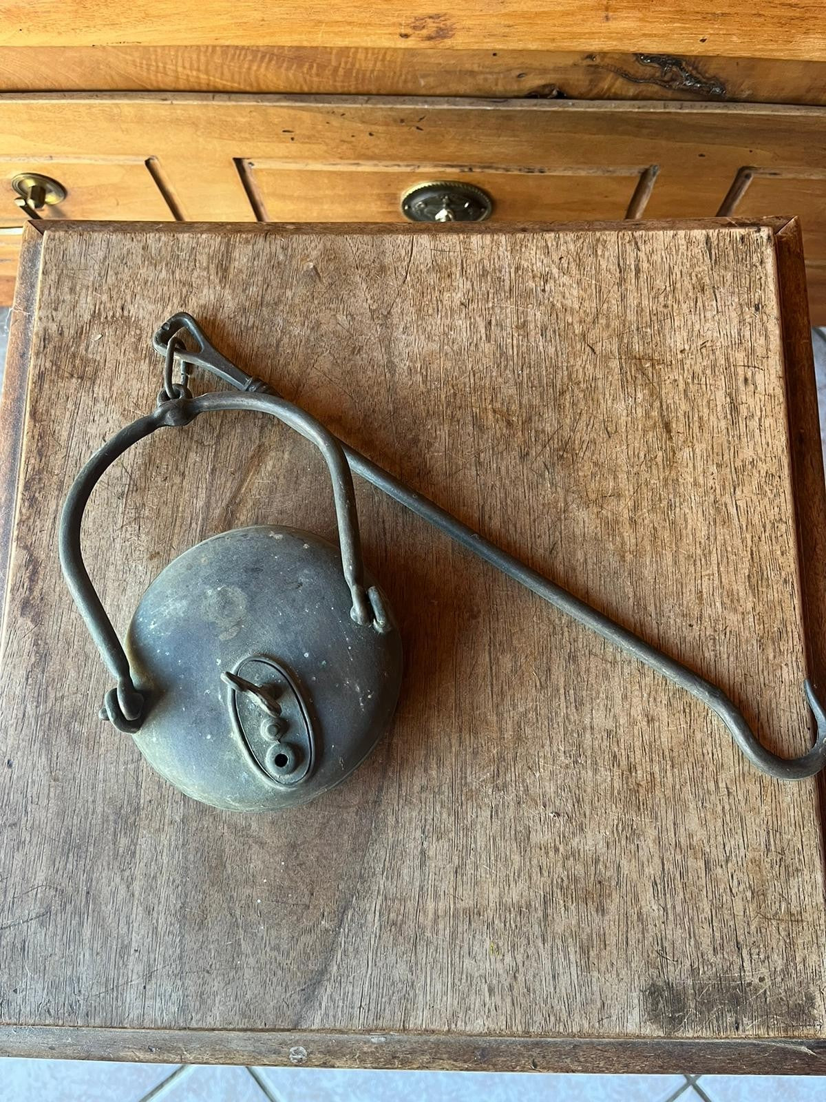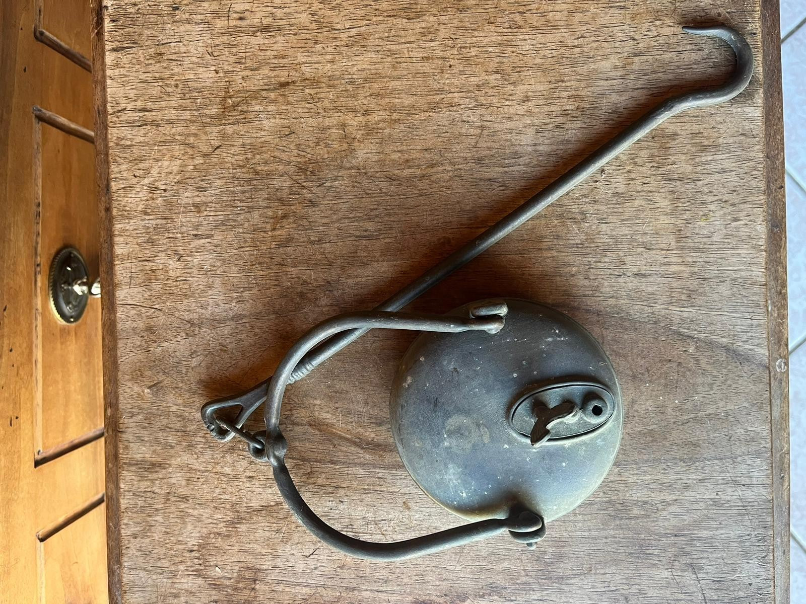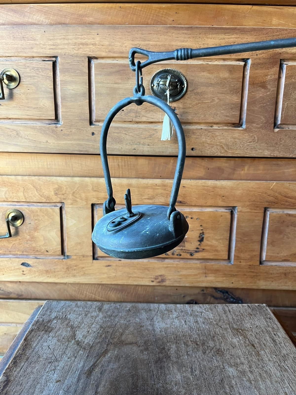 美しいアンティークの鉱夫用オイルランプ。